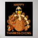 Poster Feliz Dia de Ação de Graças Turquia Jogando Comida