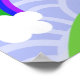 As cores brilhantes do arco-íris e as ondas azuis caprichosas no fundo parecem ecoar o humor feliz deste monstro azul giro.