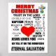 Poster de Natal religioso cristão adornado com uma cruz cristã colorida, um belo coração, e muitas mensagens cristãs inspiradoras.