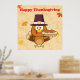Um pássaro num chapéu segurando uma torta de Ação de Graças. Esta design parece realmente eficaz nestes Poster