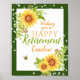 Um elegante poster de Aposentação de Girassol com flores florais de cor d'água amarela, luzes de corda e uma abelha cercada por uma borda verde correspondente. Perfeito para um membro da família ou para um colega de escritório. Excelente de exposição nas paredes e portas dos escritórios, bem como festas de reforma surpresa. A maneira perfeita de dizer felicitações a alguém em estilo na sua aposentadoria... adicione um quadro para um lindo presente de aposentadoria. Personalizar com um nome