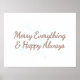 Aproveite a alegria da estação com este design quente e convidando "Feliz Tudo e Sempre Feliz". Apresentando uma fonte de script fluente, flocos de neve suaves e uma paleta de pastel suave, é perfeita para aqueles que apreciam uma mensagem de feriado pacífica e alegre. Espalhe alegria e calor a toda a temporada!