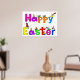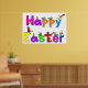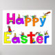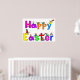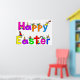 Desenho timístico das palavras FELZ PASCOA com crianças diversas e felizes subindo sobre as letras.