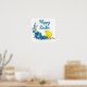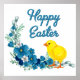 Ilustração de Páscoa bonita com pintinho de bebê e flores de Páscoa azul e as palavras Felz pascoa acima delas.