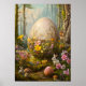 Poster de Páscoa excelente com um ovo grande de Páscoa e animais bonitos como um coelho ou coelho da Páscoa. Magical Fantasy Forest Floral Art com flores e animais adoráveis. Caça ao ovo de Páscoa excelente.