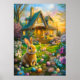 Felz pascoa com esses animais bonitos como coelhinho de Páscoa ou pintinho de bebê. Junte-se à caçada de ovos de Páscoa em primavera com cores vibrantes e alegria, doces e uma fantasia floral vintage. Coelho bonito com flores. Pintura de primavera vibrante.