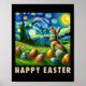 Poster Felz pascoa Van Gogh Estilo Coelho E Ovos