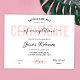 Feminine Certificate of Completion Award in pastel pink colors. Perfect for completion awards for professional beauty courses. You can also use this graduation certificate design for any type of accreditation or diploma. This cosmetologist award design features elegant script font and feminine blush pink colors.