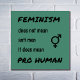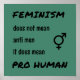 "Feminismo não significa anti-homens. Significa pró-humano". Um poster positivo e fortalecedor, para transmitir o que é o feminismo. O texto está em letras negros, com um símbolo clássico homem-mulher para enfatizar em conjunto.