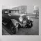 Foto antiga de um carro antigo danificado após um acidente, 1920.