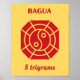 Poster de Feng Shui com Bagua ou 8 trigramas de cor vermelha, em fundo amarelo.