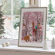 Óculos de Natal Rosa Pink da Floresta de inverno em uma floresta nevada com renas bonitinhas e céu rosa. Arte original de Caroline Bonne Müller