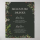 Este cartaz de drinks com assinatura botânica verde escura e tema de feriado é perfeito para o seu casamento rústico e caprichoso de inverno. Projetado com folhagens em aquarela boho de Natal, incluindo frutos vermelhos de azevinho e folhas verdes simples. O floral clássico de dezembro boêmio é outra característica do design que irá completar o tema que você está procurando. Você pode personalizar com suas próprias fotos ou mantê-lo como está. Certifique-se de olhar o resto da coleção para completar seu casamento!