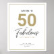 Simples festa de aniversário preto, branco e dourado "50 e Fabuloso" com tipografia elegante e elegante. Personalize-o facilmente com a idade, o nome, a data e o local da festa.