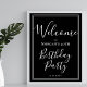 Sinal de boas-vindas preto e branco, Na moda elegante, preto e branco: convidados de boas-vindas no estilo do eterno com este sinal de festa de aniversário vertical, com um fundo preto sólido, fontes brancas nítidas e um quadro de linha branca dupla para uma aparência limpa e clássica. O texto é exibido em uma mistura de letras elegantes e serif tradicionais, criando um layout polido e sofisticado perfeito para celebrações de marcos adultos. Personalize-o com o nome, a idade ou qualquer mensagem que você queira. Este design minimalista funciona perfeitamente para qualquer evento de aniversário — quer você esteja planejando um janto íntimo ou uma reunião maior. Totalmente personalizável para se adequar ao seu estilo. Disponível em uma versão de impressão ou você pode comprar como um arquivo digital baixável para o impressão em casa ou localmente.