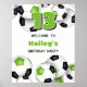 Este poster de boas-vindas de festa de aniversário temático de futebol é totalmente personalizável e apresenta esferas brilhantes de futebol verde, preto e branco, organizadas aleatoriamente e sombreadas seletivamente para dar uma aparência exclusiva em 3D - personalize sua mensagem personalizada e a idade da criança ou personalize o texto para se adequar ao seu evento - por katz_d_zynes