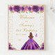 Esta elegante e glamourosa placa de boas-vindas festas de aniversário apresenta uma bela princesa com cabelo vermelho castanho e pele clara num vestido de bola roxa escura. O texto combina o script manuscrito e as fontes sans serif modernas para um aspecto elegante e sofisticado. Os arranjos florais, borboletas e confete de ouro criam a mistura perfeita de rústicos e quicos. Gráficos por www.etsy.com/uk/shop/SunflowerDayLove