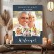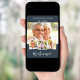 Crie sua própria colagem de fotos exclusiva. Use quatro, quatro da sua foto favorita. Personalize e adicione um nome e uma idade. Um fundo colorido de cinza de carvão, texto branco.