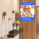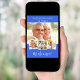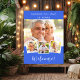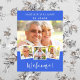 Crie sua própria colagem de fotos exclusiva. Use quatro, quatro da sua foto favorita. Personalize e adicione um nome e uma idade. Um fundo azul real colorido, texto branco.