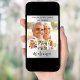 Crie sua própria colagem de fotos exclusiva. Use quatro, quatro da sua foto favorita. Personalize e adicione um nome e uma idade. Um fundo com aparência de prata falsa, texto preto.