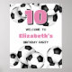 Este poster de boas-vindas de festa de aniversário temático de futebol é totalmente personalizável e apresenta bolas de futebol preto e branco organizadas aleatoriamente - personalize sua mensagem personalizada e a idade da criança, ou personalize o texto para se adequar ao seu evento - por katz_d_zynes
