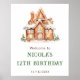 Sinal de boas-vindas do partido festivo, com uma casa de pão de gengibre. Perfeito para uma festa de Natal. As palavras podem ser alteradas para se adequarem aos seus próprios detalhes ou requisitos