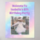 Celebre o aniversário da sua garotinha com este bonito poster de boas-vindas do festival do arco-íris pastel que contém belas letras roxas e a fotografia personalizada do seu filho. Essa decoração mágica exemplifica o encanto da infância. Adicione a fotografia do seu filho para um toque pessoal nesta bela decoração de festas.