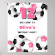 Este poster de boas-vindas de festa de aniversário temático de futebol é totalmente personalizável e apresenta esferas de futebol preto, rosa e branco organizadas aleatoriamente, que são sombreadas seletivamente para dar uma aparência 3D única - personalize sua mensagem personalizada e a idade da criança ou personalize o texto para se adequar ao seu evento - por katz_d_zynes