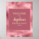 Banner/sinal de boas-vindas de festa de aniversário com diamantes brilhantes de ouro elegantes e brilhantes em fundo cor-de-rosa e ouro. O texto é uma fonte de script manuscrita fofa, mas é personalizável se você quiser alterá-lo. Entre em contato conosco para obter ajuda com personalizações ou para solicitar produtos correspondentes.
