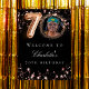 Um poster de boas-vindas para uma festa de aniversário 70. Fundo preto e estrelas rosa douradas. Personalize e adicione um nome e uma foto. Para trás: sem design.