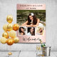 Crie sua própria colagem de fotos exclusiva. Use quatro, quatro da sua foto favorita. Personalize e adicione um nome e uma idade. Rosa dourado, fundo de gradiente de borra, texto preto.