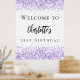 Um poster para uma festa de aniversário giratória e glamourosa de 21 ruas (ou qualquer idade). Um fundo branco-na moda, decorado com brilho de falso colorido violeta e lavanda, brilhos. Personalize e adicione uma data, nome e idade 21.
