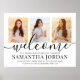 Adicione um toque personalizado na moda à faculdade ou decorações de festas de formatura de segundo grau com um poster de boas-vindas personalizado de 3 imagens, de 18"x24". A imagem e todos os textos neste modelo de sinal baixável são simples de personalizar, e as cores podem ser alteradas com a ferramenta Zazzle design. O moderno design de camada minimalista apresenta caligrafia manuscrita de script, tipografia clássica chic e três fotos de sua escolha, como mais velho ou imagens da cerimônia de início. Esta placa de festa de formatura impresível é uma maneira elegante de receber convidados no dia especial. Parabéns ao formando!