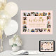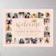 Adicione um toque personalizado a decorações de festa de formatura ou de faculdade com uma colagem de fotos de na moda 18"x24", poster de boas-vindas. As fotos e todos os textos deste modelo de sinal baixável são simples de personalizar, e as cores são fáceis de mudar com a ferramenta Zazzle design. A design cor-de-rosa e dourada apresenta a caligrafia tradicional de escrita manuscrita, a tipografia moderna minimalista e 20 fotos quadradas da sua escolha, tais como mais velho ou imagens da cerimônia de início. Observe que o ouro é impresso a cor, não a folha metálica. Este poster de formatura imprimível é uma maneira elegante de dar boas vindas a amigos e familiares para uma celebração especial. Parabéns ao formando!