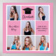 Um poster de graduação de formando de mais velho personalizado clássico com quadrados cor-de-rosa para uma mais velho de segundo grau se formando com a classe de 2023. Personalize com suas fotos de retrato de mais velho, nome da escola e classe de graduação sob a elegante caligrafia para um presente de graduação personalizada de excelente. Ele apresenta um modelo de 6 fotos separado por linhas brancas.