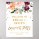 Este poster de boas-vindas da festa de noivado floral de outono é perfeito para um evento de casamento outono. O design apresenta um buquê espantoso de pincel, pêssego laranja, e flores marsala burgundy com falsa tipografia de folha de ouro e confete. Personalize o poster com o nome da noiva e do noivo a ser, e a data e o local do evento. Nota: Este design não apresenta folha de ouro real. É um gráfico de alta qualidade feito para se parecer com folhas de ouro.