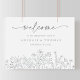 Esta poster de boas-vindas neutra de festa de noivado de flor silvestre é perfeita para uma simples celebração de noivado. A design apresenta flores selvagens de campo pintadas manualmente e neutras montadas em buquês florais sem costura e charmosos, evocando a beleza natural. Faça deste poster com que seja seu, adicionando o nome da noiva e do noivo, e a data do noivado.