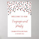 Poster de boas-vindas com festa de noivado de de texto personalizado com confete vermelho e preto.