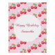 Este design apresenta cerejas e mini pontos brancos e corações em posters