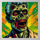 Poster de Halloween. Zumbi assustador e decadente feito em uma arte pop no estilo de banda desenhada ai art. Legal para o Halloween ou qualquer pessoa que ama zombies.