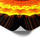 Um design em forma de flor de vários tons de laranja, vermelho e amarelo.