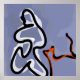 Abstrato de Impressão de figuras sentadas e de gatos com esquemas de cor azul complementares e monocromáticos, incluindo preto e branco