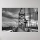 Esta foto em preto e branco foi tirada enquanto caminhava pela Ponte Ben Franklin até a cidade de Filadélfia. A arquitetura dos arranha-céus e edifícios de Filadélfia pode ser vista a distância. Center City, a área de centro de Filadélfia, está no canto inferior esquerdo da fotografia.