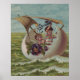 Crianças Páscoas antigas velejando em seu ovo de Páscoa - de um cartão vitoriano de Páscoa. As crianças estão velejando um ovo gigante de Páscoa na vela de cheio. A imagem de navegação da Páscoa é de um cartão postal de Páscoa do final dos anos 1800.