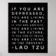 O Filósofo Chinês Lao Tzu Taoist cita: "Se você está deprimido, você está vivendo no passado. Se você está ansioso, você está vivendo no futuro. Se você está em paz, você está vivendo no presente." Impressão preto e branco.