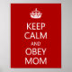 Mantenha Calma e Obey Mãe, esta engraçada deriva da popular propaganda britânica da poster "Mantenha calma e carregar" é divertida e engraçada para o Dia de as mães ou qualquer dia. Mamãe vai adorar que todos os filhos a obedeçam e sigam seu conselho sábio. Fundo vermelho escuro com letras brancas e emblema. Copyright © www.CuteComfy.com