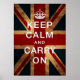 Motivar e encorajar com esta versão legal do poster da WWII Grã-Bretanha "Manter Calmo e Continuar"! Possui a linha padrão e a coroa com uma ligeira sombra de indefinição para profundidade adicionada em uma bandeira da bandeira da bandeira da bandeira da União levemente angustiada para aquela aparência de vintage.
