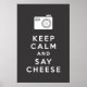 Os antecedentes negros com a famosa série "Mantenham a calma", totalmente no estilo feminino "Mantenham a Calma e Digam Queijo". Ele é ilustrado com uma câmera. Outras cores disponíveis. Para precisar de uma cor especial, entre em contato comigo ou use o menu de edição em personalizá-la.