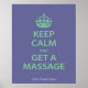 Fique calmo e pegue uma massagem, mantenha calma e pegue Reiki. Na combinação tradicional vermelho e bronzeado, ou com texto verde ou branco nítido para que você possa escolher qualquer fundo que quiser. Poster perfeito para seu estúdio de massagem, centro de cura de reiki ou salão de spa. Adicione seu nome ou empresa para personalizar. Baseado no clássico WII, mantenha a calma e carregue posters na Inglaterra.