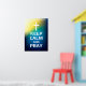 Poster motivacional. Fique calmo e reze. Espaço aberto, estilo céu estrelado. Impressão design. Fundo escuro